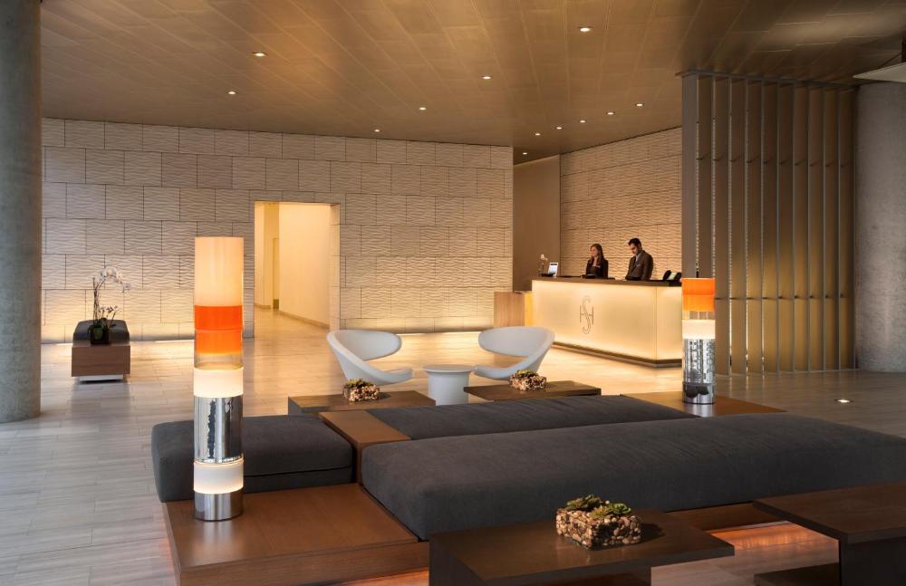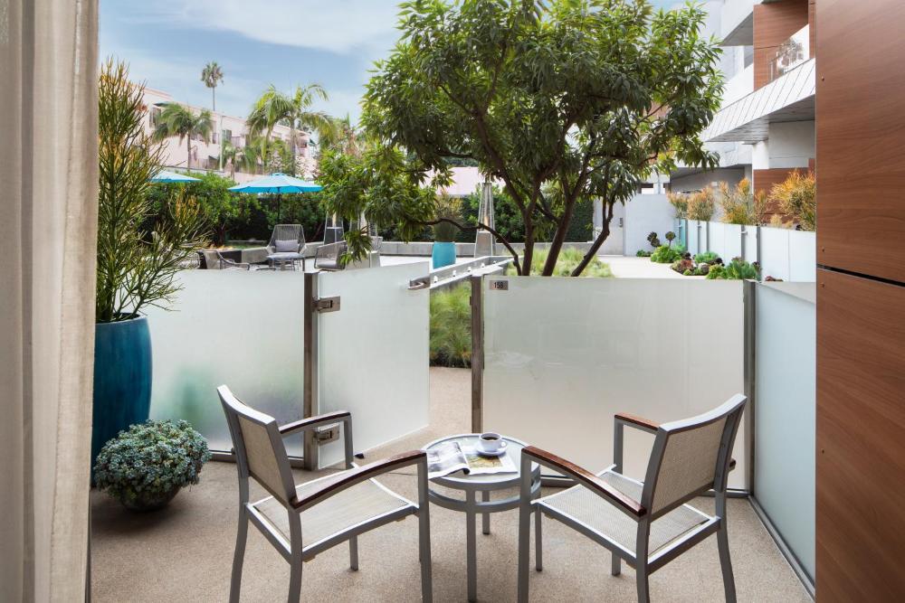 The gallery of Shore Hotel captures a property built for the California coast. Rooms highlight glass walls that frame the ocean or city, while private balconies and sleek furnishings set a modern tone. The pool deck stands out, with loungers lined against the backdrop of the Pacific. The lobby glows with sunlight through the hotel’s glass façade, and surrounding shots showcase the unbeatable proximity to the beach, Santa Monica Pier, and palm-lined Ocean Avenue.